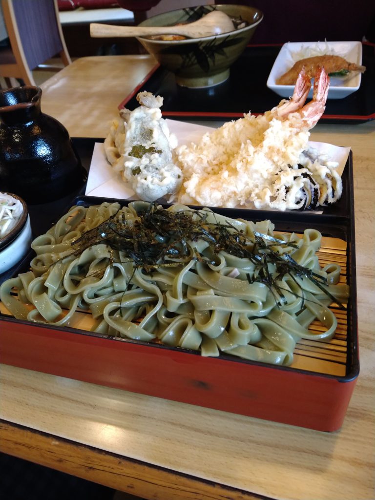 もっちもっちの麺はみどり色、これは間違いなくおうどんです