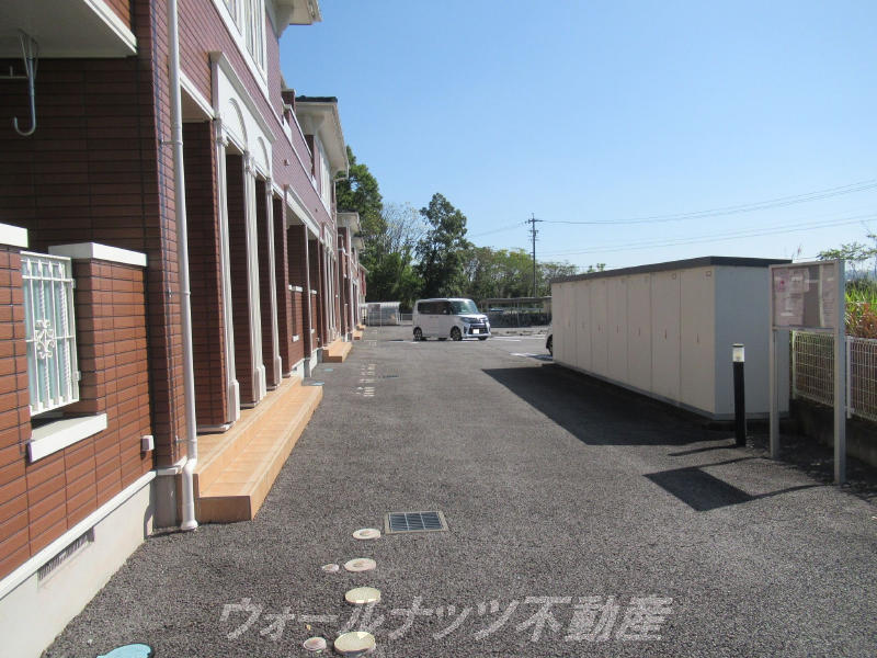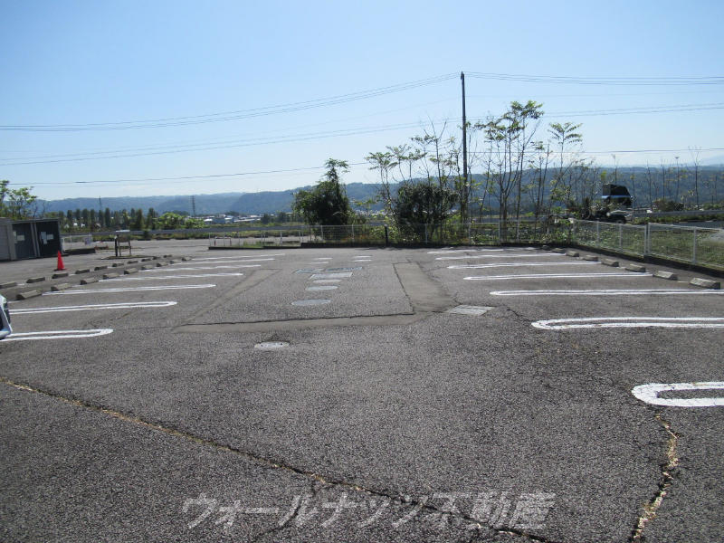 ◎バルコニー前は通路があり広い駐車場です。陽の光を遮る建物はないのでバルコニー、リビングは陽当たり良く明るいお部屋ですね。カーテンは必需品です。