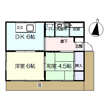 戸建て、バストイレ別、温水洗浄便座、プロパンガス給湯 ガスコンロ設置済、ダイニングキッチン6帖、洋室6帖、和室6帖、押入、冷房設備、照明器具、冷蔵庫、洗濯機、室内洗濯機置場、洗面台、駐車場(縦列2台)、専用庭、インターホン
